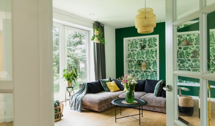 Para crear un buen contraste y aprovechar la luz natural, complementa estos colores con cortinas y alfombras de algodón o lino en tonos crudos. Agrega detalles étnicos, como un jarrón de barro cocido, para dar el toque final.