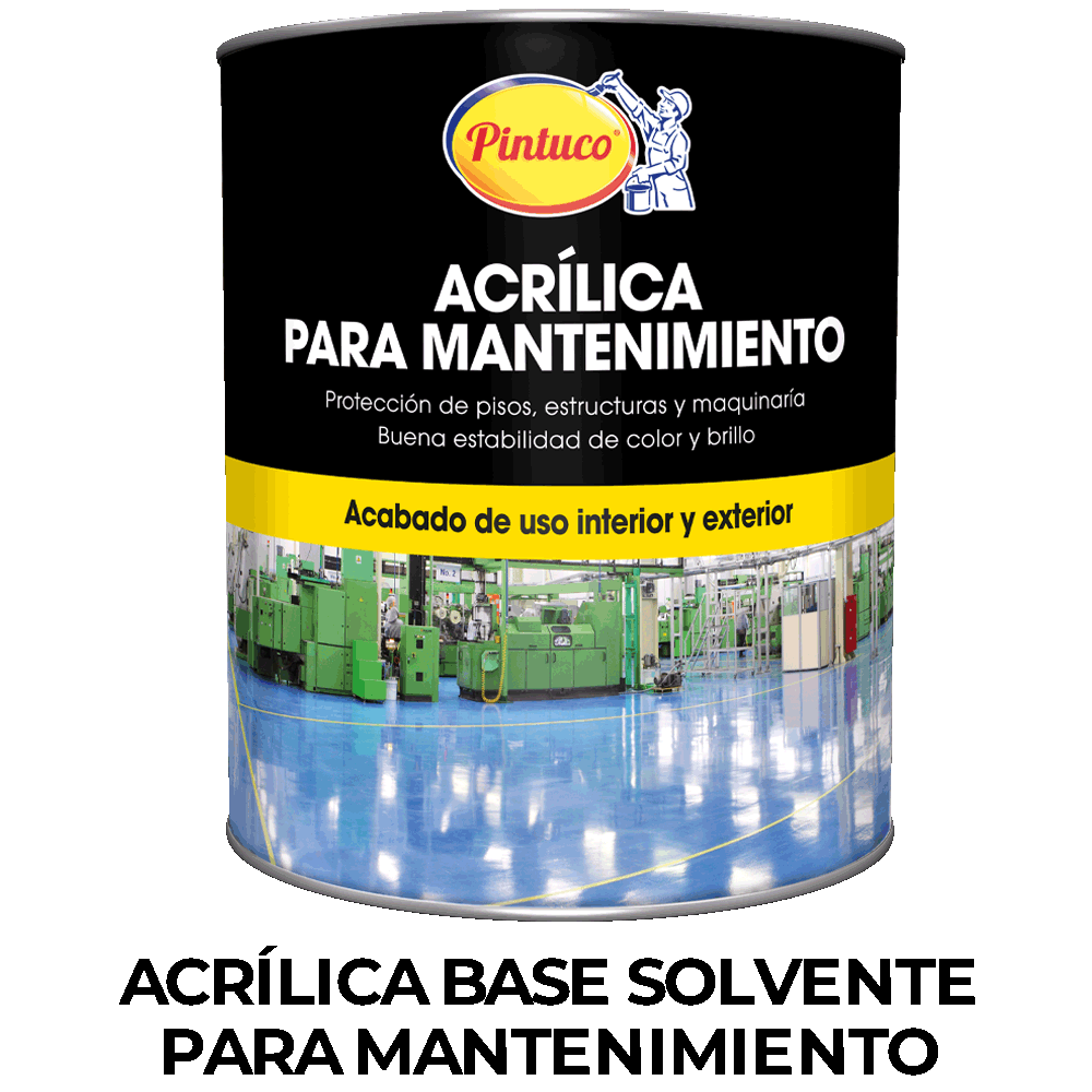 acrílica para Mantenimiento Base Solvente es una pintura de acabado acrílico Semi-mate y brillante, de Rápido secado, en un único componente, con alta durabilidad para uso en exteriores, con buena estabilidad del color y retención del brillo.