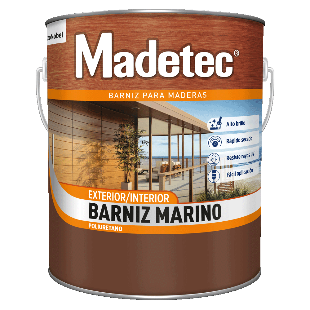Madetec Barniz Marino es un barniz basado en resinas uretano modificadas de alta resistencia y absorbedoras de luz ultravioleta para prevenir la degradación aceledara de la película por la acción de la luz solar. Deja un acabado transparente de alto brillo resaltando las vetas naturales de la madera. Ideal para ambientes marinos. Resistente al agua dulce y de mar, a temperaturas extremas y a los cambios ambientales.