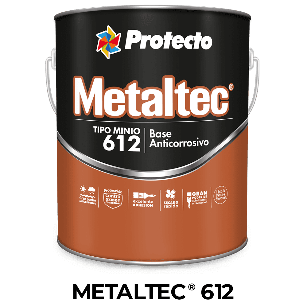Metaltec 612 es un primario formulado a base de resinas alquídicas y pigmentos inhibidores de corrosión para protección de metales ferrosos en interiores y exteriores. Puede recubrirse con pinturas alquídicas y de látex. Presenta un alto poder de opacidad, nivelación y resistencia a la intemperie en sistemas de pintura completa. Libre de plomo y mercurio.