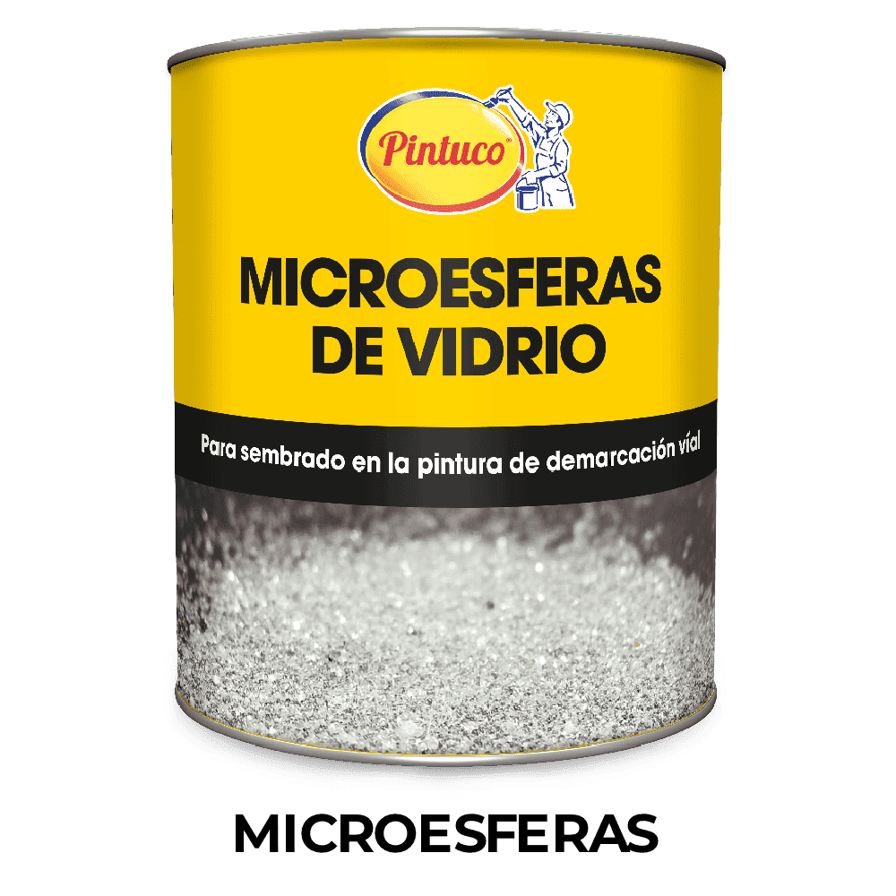 Microesferas de vidrio menores a un milímetro para sembrar en la pintura de demarcación vial con el fin de mejorar tanto la visibilidad nocturna como la resistencia a la abrasión vs la pintura sin microesferas.