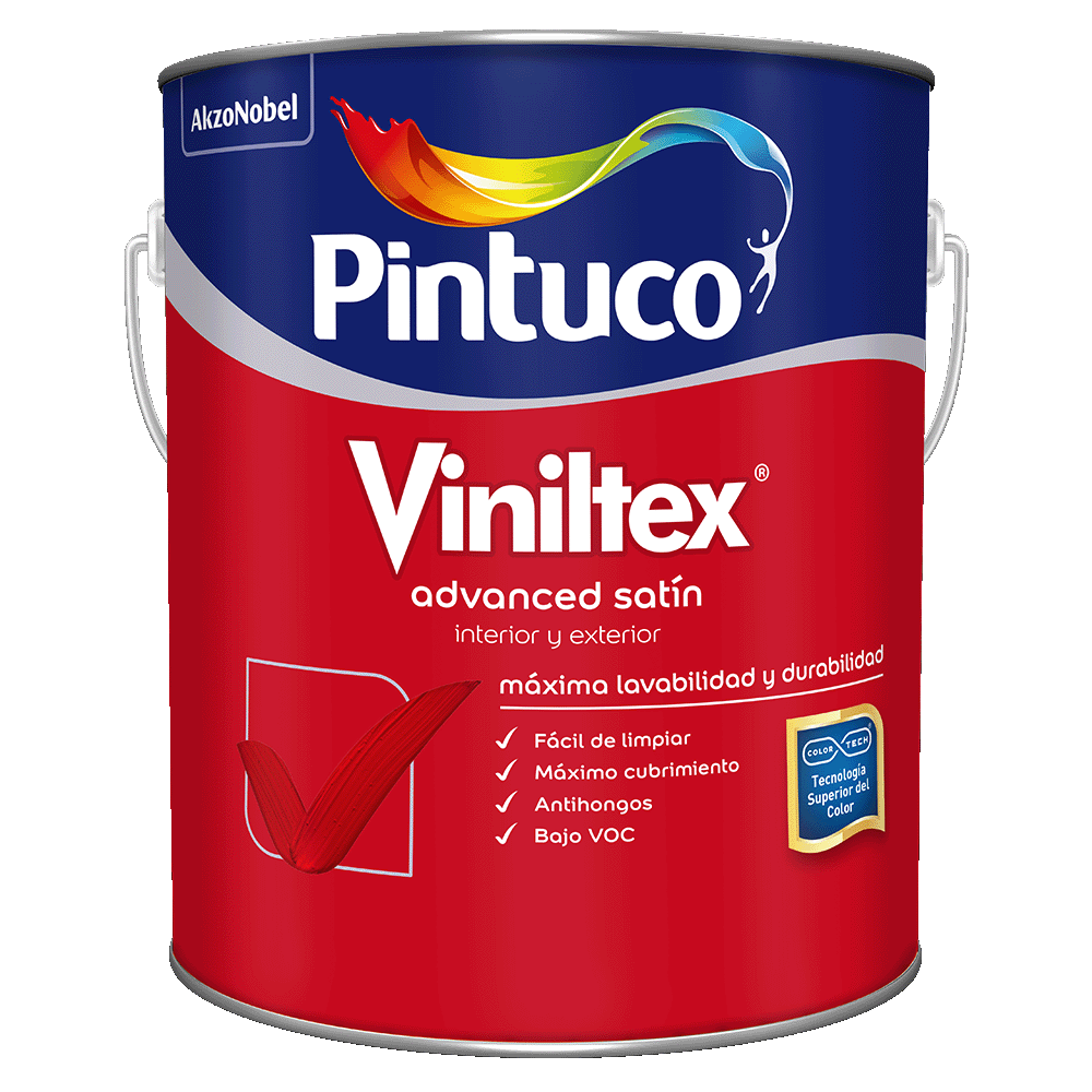 Viniltex Satín es una pintura base agua de primera calidad elaborada con resinas de alta tecnología y pigmentos de excelente opacidad, que proporciona un altísimo cubrimiento al acabado y máxima durabilidad. Brinda protección contra hongos y algas y es muy fácil de lavar, por lo que está recomendada para el uso en interiores y exteriores. Su formulación está libre de plomo y mercurio, posee bajo olor y seca rápidamente.