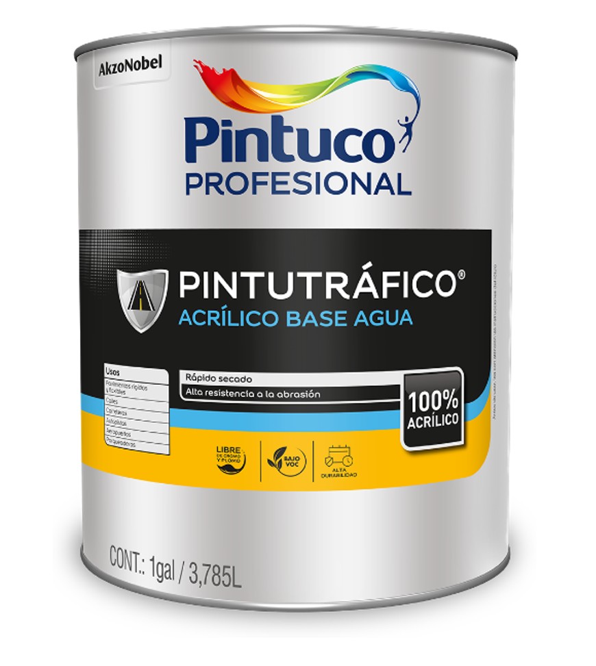 Pintutráfico Acrílico Base Agua es una pintura 100% acrílica pura para demarcación horizontal, con excelente visibilidad diurna y nocturna, resistente a la abrasión severa y a gran variedad de contaminantes, durable y de rápido secamiento.