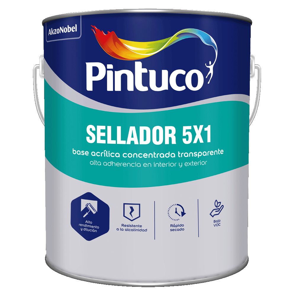 Sellador Concentrado 5X1 es un sellador que mantiene un alto rendimiento para usos en interiores y exteriores. El sellador Concentrado 5×1 es un sellador multipropósito que puede ser usado como promotor de adherencia de morteros de concretos nuevos sobre viejos en diluciones 4×1 ‘o 5×1. También confiere una excelente barrera a la humedad interior de la superficie (sin ser un producto de presión negativa). Fabricado con resinas acrílicas que le dan excelente adherencia sobre múltiples tipos de superficies y es altamente resistente a la alcalinidad usual de las superficies de albañilería. Puede diluirse hasta 5 partes de agua por 1 parte de sellador. Es libre de plomo y mercurio. Posee bajo olor y es de secado rápido.