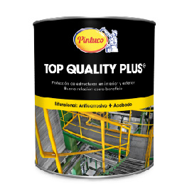 Top Quality Plus es un esmalte Alquídico mates y semibrillantes (según referencia) de secamiento al aire, para ser aplicados directamente al metal adecuadamente preparado. Es un producto bifuncional que sirve como primer anticorrosivo y pintura de acabado. Es un producto de alto poder cubriente, alto espesor por mano (2-4 mils con airless), excelente adherencia y Rápido secado.